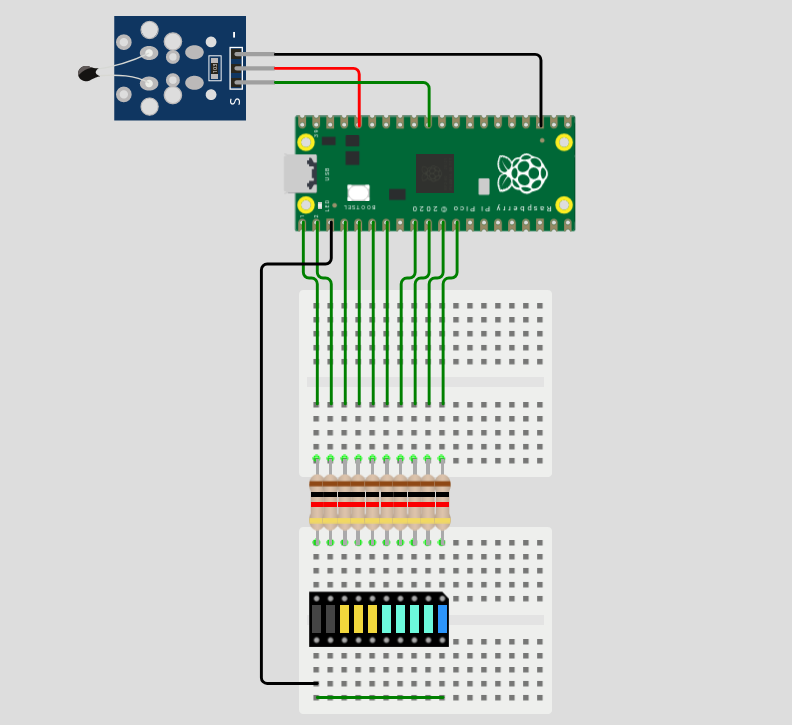 | 1,6 | RP Pico | DHT22 (H) | LED шкала |